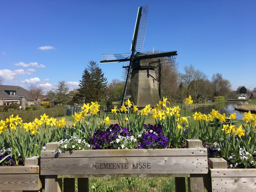 verkaveld Nederlands landschap liggen de bollenvelden er als strakke biljartlakens bij. Tegen de tijd dat we via Hillegom in Lisse aangekomen zijn, begin ik al redelijk ‘high’ te worden van het dagje oer-Hollands cultuur snuiven. We maken een tussenstop bij de sportvelden in Oestgeest waar mijn vrouw die dag moet tennissen. Bij baan 1 zitten we in stijl letterlijk achter de geraniums. De menukaart ziet er zo goed uit dat we besluiten de bloemetjes eens goed buiten te zetten met een dozijn tosti’s (voor twee personen) en een paar goed gevulde glazen witbier. Gezien mijn lijfspreuk “sport ik wil er wel veel voor doen, maar niets voor laten” is deze tussenstop echt een schot in de roos. Op de terugweg probeer ik natuurlijk te verbloemen dat het bier z’n tol heeft geëist maar ’s avonds slaap ik als een roos.
