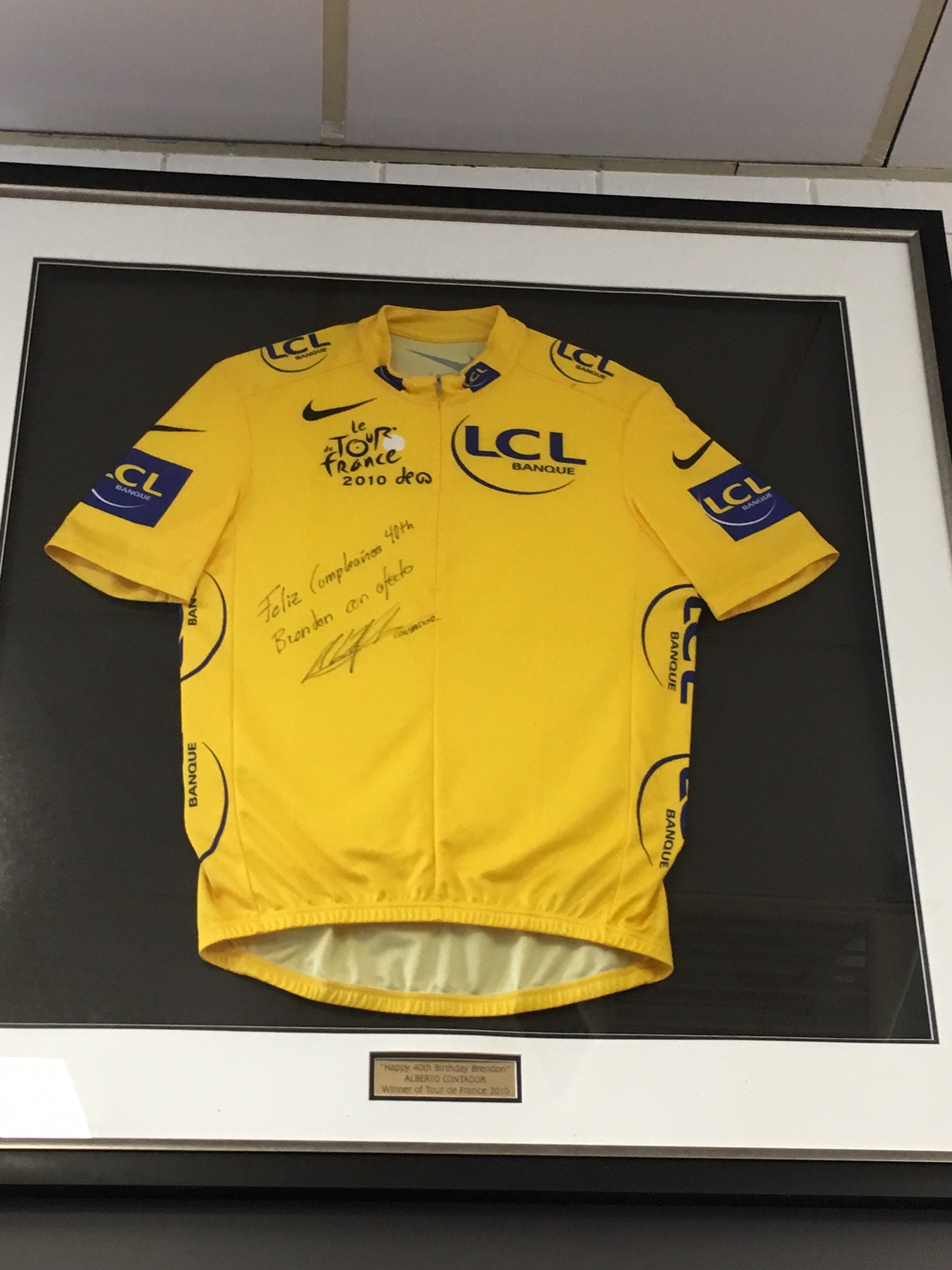 Hardlopend naar de fietsverhuurder ‘CyclePath’ in Bright kom ik tot de ontdekking dat de gele trui hier al vergeven is aan Brendan Dean. De eigenaar van de zaak heeft een gesigneerde gele trui van Alberto Contador uit 2010 hangen, gekregen van zijn broer Julian Dean, oud profwielrenner en sprinter (die overigens geheel terzijde een aantal keren in mijn Tourpool gefigureerd heeft😔). Kortom, de bolletjestrui is het hoogst haalbare tricot dat op de 1700m hoge top van Mt Buffalo op mij kan liggen te wachten. Voor deze Westlandrijder en pondjes-cruizer in het Hollandse landschap is dit een reuze berg, voor Fransen kinderspel. Omdat de route 84km lang is en 1500 hoogtemeters in de 21km lange beklimming naar de top kent, is het ook hier een serieuze tocht in de Australische Alpen zoals het gebied hier genoemd wordt. Ter vergelijking de Alpe ‘d huez en Ventoux kennen ook hoogteverschillen van 1500m van dal tot piek. Ik pak m’n bijna nog gloednieuwe fiets afgemonteerd met Shimano ultegra en merk dat de achterrem links zit. Even oppassen dus. Maar goed die remmen heb ik de eerstkomende 50km nog niet nodig.