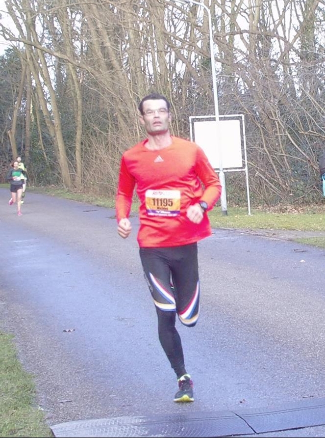 Na een kilometer of wat kom ik in een goed 4min/km groepje van overwegend halve marathonlopers. Dit is ook precies mijn halve marathon tempo. Ik twijfel en in wielertermen gesproken zit ik zo’n 500m ‘aan het elastiek’. Na een korte twijfeling besluit ik dat ik gezien de wind waarschijnlijk verder kom als ik gewoon aansluit…ik realiseer me dat het vandaag wel gaat om 30km. Ik haak aan, ‘de gladiolen’….. Als laatste loper moet ik er bij twee steile klimmetjes even af om vervolgens alle zeilen bij te zetten om weer aan kunnen haken. De tweede keer dat ik moet lossen word ik geholpen door een mtb-er die het gat van 5/10m voor mij dichtfietst. Op km 15 breekt de groep in tweeën. In gedachten ga ik mijn lijf langs. Benen voelen steeds sterker. Rust in het hoofd, geen last van de drukte en ik lig notabene dik voor op m’n schema. Conclusie ik zit in de flow. Ik weet met nog twee andere lopers in mijn rug terug te lopen naar het eerste deel van de groep maar op km 20 (waar de halve marathon lopers afslaan) sta ik er echt alleen voor en dat heb ik geweten ook. Op km 22-25 heb ik het even zwaar. Oplopend terrein en serieus harde tegenwind en dan ook nog een vies gelletje (mint is geen aanrader dus weer wat geleerd!). Ik weet mij gelukkig weer te herpakken en de wedstrijd mooi vlak uit te lopen met de vertrouwde publieksversnelling op het eind en ik finish in 2.01,04. DIK en DIK tevreden!