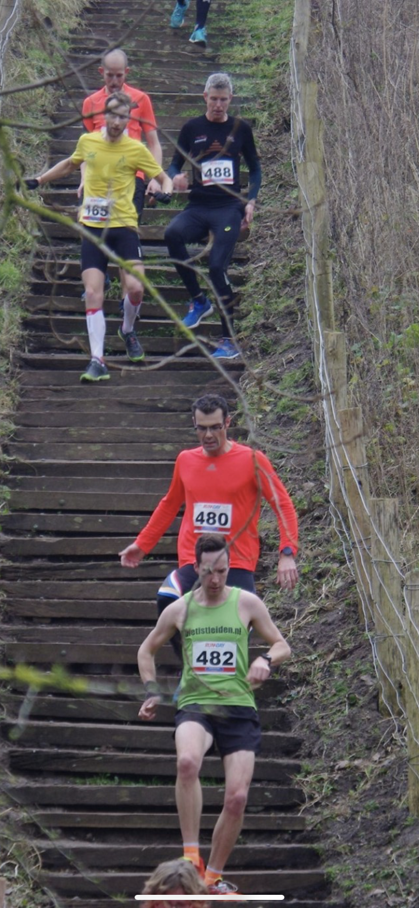 Hoewel ik ‘het sprookje van de 1001 traptreden’ kan dromen was er dit jaar een verrassingselement. De route was iets omgelegd en het centrale verzamelpunt was op een andere locatie met als aangename verrassing ruim voldoende wc’s voor iedereen bij de start. Waar maak je dat nog mee? Het letterlijk en figuurlijk echte hoogtepunt van de verrassing was toch wel de nieuwe trap op het parcours. Houdt het hiermee op? Nee, ieder jaar krijg je een verrassingsaandenken ipv de gebruikelijke bling bling. Een Puinduinbiertje, een pet, shirt, buff etc. etc. Zelf ben ik altijd wel gecharmeerd van deze bruikbare en tastbare herinneringen die je het hele jaar door doen denken aan een race. Zo kijk ik al een paar jaar iedere zondagochtend aan tegen het plaatje van Haagse Harry op mijn puinduinmok. Maar de beste herinnering blijft toch altijd wel dat ondanks het feit dat de wedstrijd ieder jaar zwaarder lijkt te worden ik het gevoel heb dat ik ieder jaar sterker uit deze hartslagrollercoaster kom.